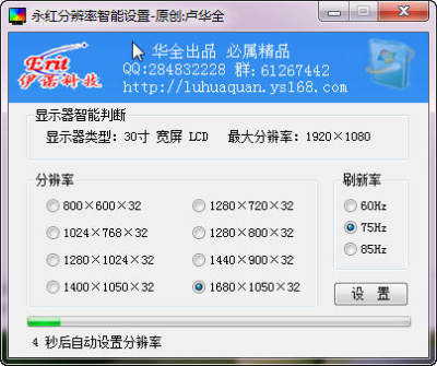 打开软件,软件会自动判断当前显示器类型及最大分辨率;