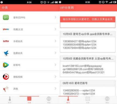 VIP分享网是一个专门为大家提供各大视频网站免费vip账号的平台,大家可以在这里免费获取爱奇艺、迅雷、土豆等免费vip账号。有了它之后,大家以后就可以轻轻松松免费享受各个网站的vip特权了,有需要的朋友快来免费下载使用吧!