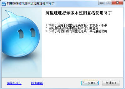 阿里旺旺提示版本过旧复活使用补丁是一款针对阿里旺旺或千牛等软件,因版本过旧,而造成该软件不能正常使用的复活补丁,有了该补丁,旧版本的阿里旺旺或千牛等软件仍然可以继续使用啦!