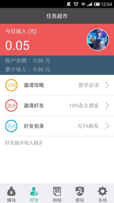 任务超市是一个让您试玩应用就能赚钱的平台,通过与全国各大APP合作,我们每天为您提供上百个APP体验任务,让您轻松月赚千元。邀请好友更能获得20%的额外佣金收入,让您躺着成为土豪!