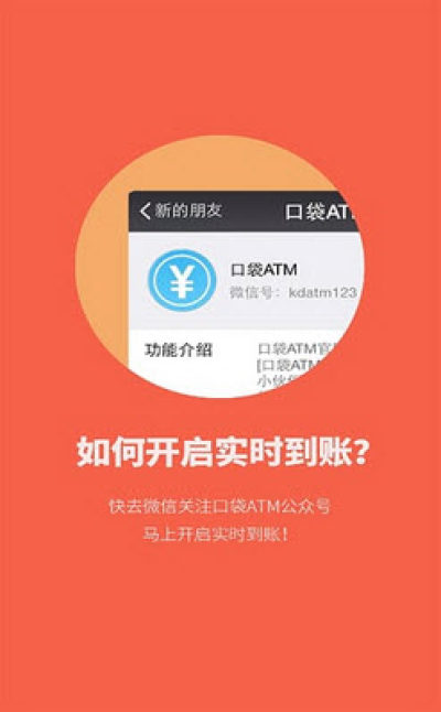 1.绑定手机号码和口袋ATM微信公众号后,即可开通实时返钱功能,余额多余1元时就能自动打钱到您微信账户。