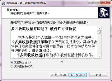 下载压缩包,解压双击exe程序进入安装状态;下一步,仔细阅读许可协议,如无异议,点击同意