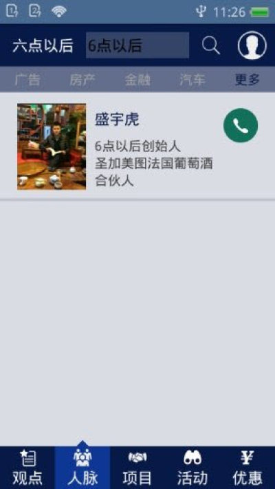 对于不少老板和企业高层领导来说,人脉对于自己和企业将来的发展非常重要,这款6点以后手机应用可以帮助你结交更多同区域、同行业的高层人员,拓展大家的人脉关系,有需要的朋友快加入进来吧!