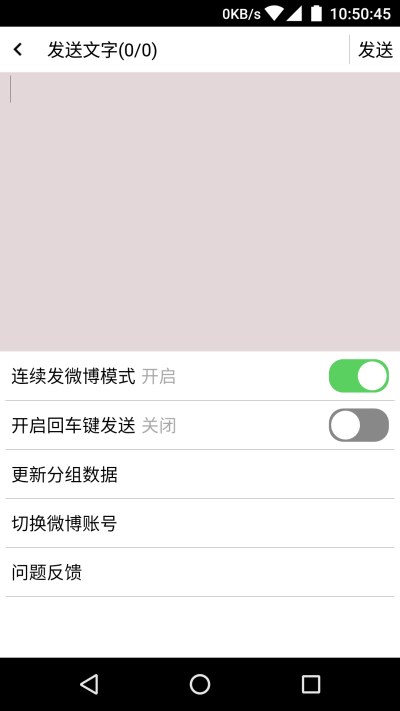 8.支持分段发送,给你另外一个选择,如果输入超过140字又不想以长微博的形式发送出去,APP会自动分割成N条微博分别发送,微博分组后不用担心阅读顺序,程序会自动标记并倒序发送,小伙伴们再也不用担心字数太多一直精简字数啦。
