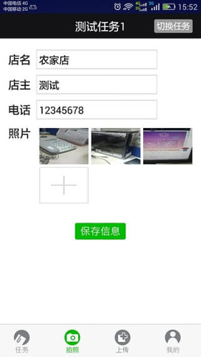 3.执行任务,在没有网络的情况下,可在照片管理中,将任务执行结果拍照保存在手机中,待有wifi时再上传数据。如果在wifi环境下执行,则可拍完照片即时上传。