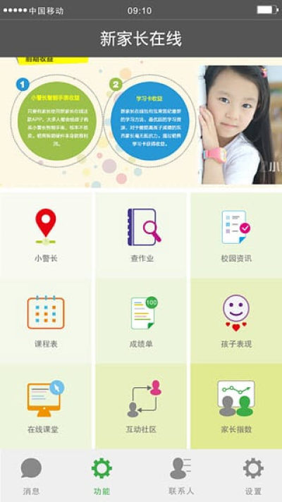 新家长在线APP是一款包含儿童安全(小警长),以及家校互通的软件,老师可以直接通过手机APP发送班级通知、作业给家长;家长可以通过手机查看学生成绩、作业、通知;并且老师—家长—学生可以通过手机APP即时通讯,实现三方“零”距离沟通。 就新家长在线而言,它给自己的定义是:家长与孩子共同成长。简而言之,只有与孩子共同成长的家长才是“新”家长!