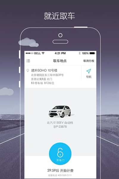 利用移动互联网来实现用户快速找车,APP开车门,锁车还车,自助缴费功能。按照时间与里程计费方式,真正实现“随时随地代步车”。