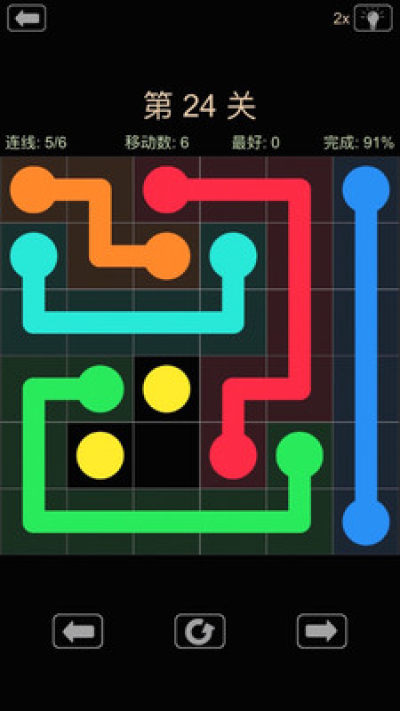 天天开心连线是一个简单并且容易上瘾的益智休闲游戏。连接每一对的色块,并且连线占满整个屏幕才算过关。有几百个关卡等着你来挑战。从简单轻松到复杂抓疯。如何玩由你决定。