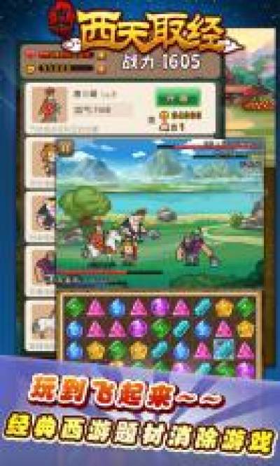 1、以经典西游为题材制作的消除手游;