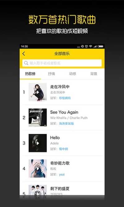 1. 选择一首你喜欢的歌曲,几十秒即可拍成短视频。