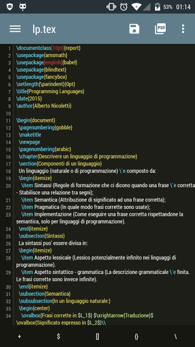 一个LaTeX编辑器,简化了在手机上撰写文档时的操作,并可以让你将其通过远程服务器编译成pdf文档。