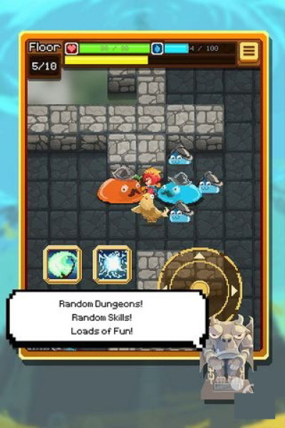 通过点击屏幕上的虚拟摇杆来控制主角行动,杀死怪物获取经验以提升属性和解锁技能。