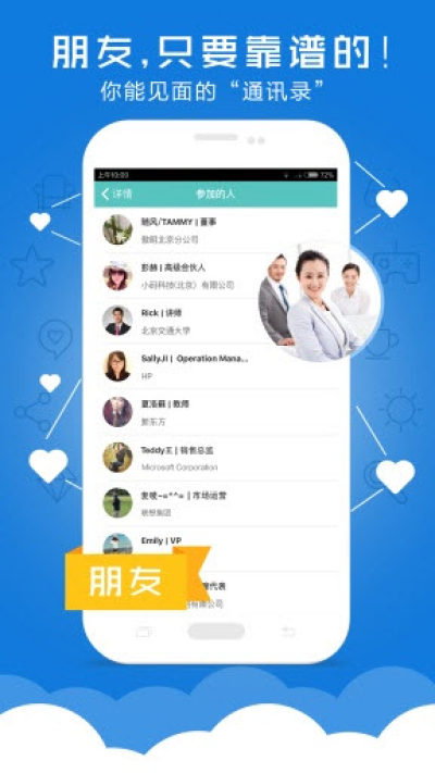 4.根据用户特征进行数据分析,精准推荐,让“有选择困难症”的繁忙职场人更容易决策。Meet the right people at the right events, 在对的场合,遇见对的人。