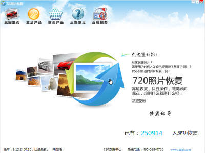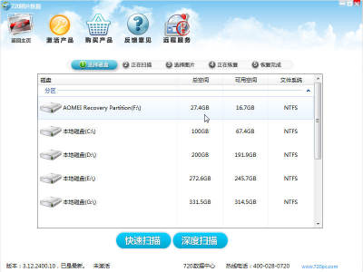 720照片恢复是一款专门针对照片丢失的专业级数据恢复系统,该系统操作简单易用且功能强大,可以快速恢复被误删除.误格式化.分区丢失以及误ghost产生的照片丢失.