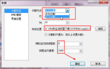 点击配置,可选择切割方法、设置界面或者直接选择图片点击切割按钮