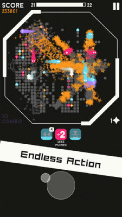 极简连环反应Starific是个画面效果很棒的休闲游戏,游戏中需要使用一个虚拟摇杆控制挡板位置,实际玩起来眼花缭乱,虽然节奏不算快,但是特别考验了玩家的判断和反应速度。酷炫并极有风格的极简连环反应Starific是一个无尽的街机风格游戏,在游戏中你需要进行连锁反应,同时借助能力加强的力量来保证你的反应堆的活跃度。