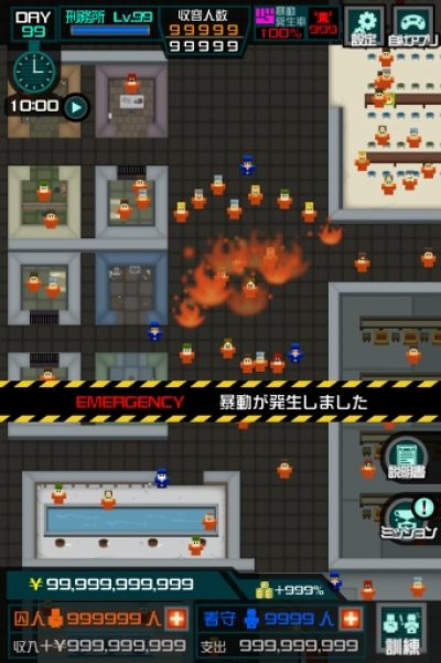 经营计划:囚犯和看守的监视;各房间的等级升级;囚犯和看守的要求,完成任务;运营费积欠;暴动镇压