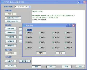 ACR122U读写器读取卡片操作:点击读取卡片按钮,则弹出读取扇区对话框,你可根据你的需求,选择全选,也可选择你需要读取的扇区,软件支持单选、多选、全选功能。