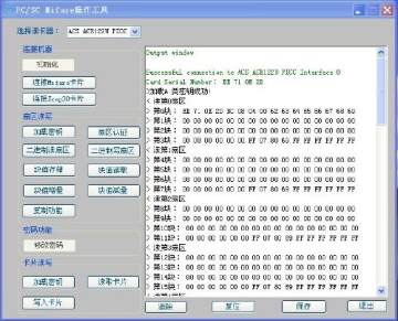 PC/SC Mifare操作工具,可读写卡片加载密钥,二进制读取扇区,二进制写扇区,扇区认证及加载密钥。块值存储读写增量与减量,具备复制功能。