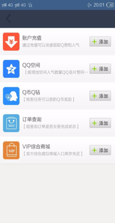 拥有账户充值、刷QQ空间人气、Q币Q钻、订单查询等独特功能。