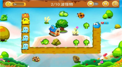 萌糖超人是一款和保卫萝卜比较相似的手机塔防类的小游戏,玩家需要在游戏开始的时候建设炮塔。 然后等怪物出来以后进行射击消灭,只要怪物不闯过最后的大本营就算胜利啦!