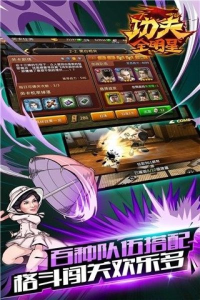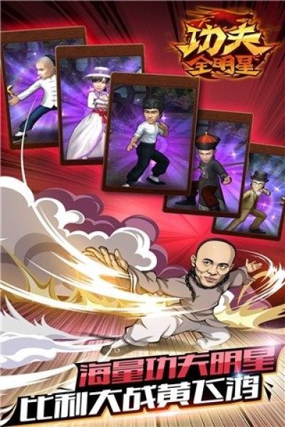2015年度格斗手游巨作《功夫全明星》,是一款功夫题材的3D动作格斗手游。流畅而逼真的战斗动作、拳拳到肉的打击感、配合中华武学的酷炫招式,打造与众不同的格斗体验! 电影正版授权,百分百场景还原 真人实时对战,与好友切磋武技 海量功夫明星,比利大战黄飞鸿 百种队伍搭配,格斗闯关欢乐多 真功夫电影正版授权动作手游《功夫全明星》,由《流星蝴蝶剑.net》研发公司昱泉国际制作,英雄互娱代理发行。