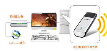 832U支持模拟AP功能,把有线转成无线,把网卡当做AP来使用,方便用户能够通过无线网卡来实现多人共享上网。