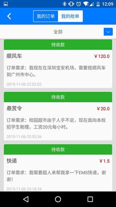 1.校园超人全新1.0版,提供校园内部”快递“、”顺风车“和”悬赏令“实时需求信息发布功能;