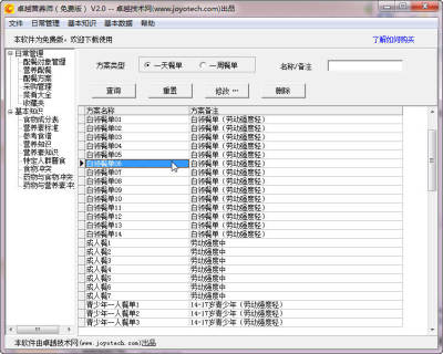 9、提供食谱方案管理功能,用户在配餐时可对一些典型配餐方案,如一天或一周的食谱命名并保存方案,以便后续调用方案,快速配餐。