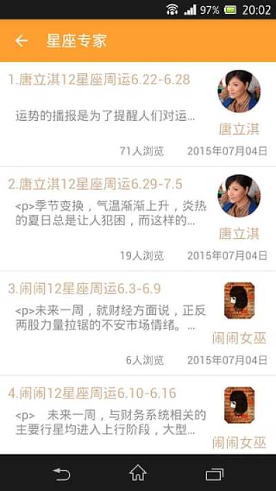 用户除了可查看精准的天气预报之外,还可以有多种多样的玩法,如查看自己星座的运势,查看各个星座专家的运势播报,查询自己与明星的配对指数及搞笑配对内容。还可以随时与美女进行配对交友。