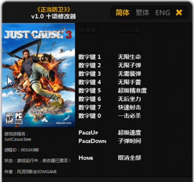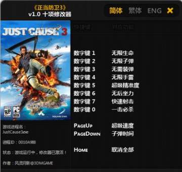 今天给大家带来的是正当防卫3十项功能修改器,有需求的朋友快来下载吧!