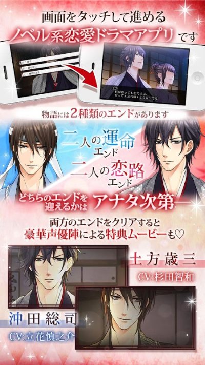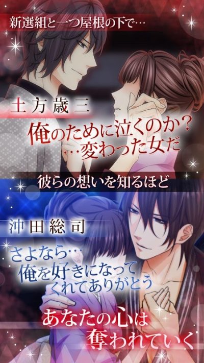 时代是幕府末期。被浪士袭击的你拯救了新撰组。人们所畏惧的新选组。只知道挥舞刀斩人的手,竟然不能拒绝触及你的温柔的手...拼命贯彻爱他们的时候,选择与新撰组一起生存下去的命运的恋爱揭开了帷幕。
