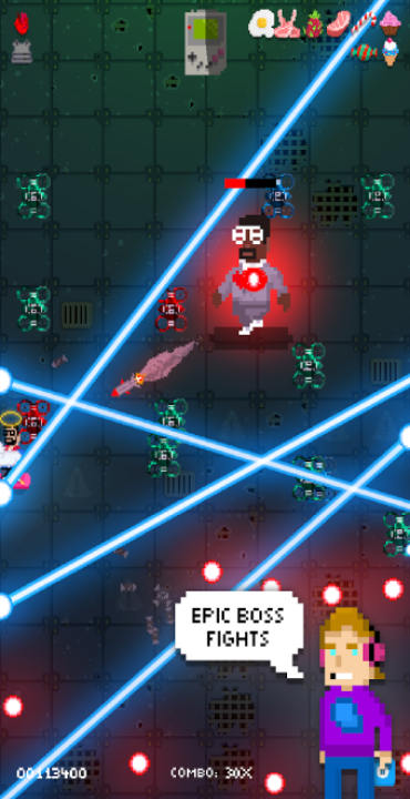 这个游戏回答了人生中最重要的几个问题之一:“我能养一只激光猫咪吗?”答案当然是可以的! 射下繁星是一个多彩的趣味弹幕射击游戏,游戏中玩家将要手持激光猫咪射击由外星人假扮的超级巨星,比如Justin Belieber, PewDerPie, Kanye East 还有更多人。 射下繁星拥有了超过50多个究极武器和物品可供收集。每个物品都可以完全改变你的游戏方式。