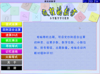 可以进行加法、连加法、减法、乘法、除法的竖式运算练习,电脑自动出题,自动判断对错,自动评分,完全可以替代家长出题。