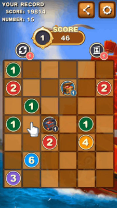 海盗夺宝是一款益智休闲类型的手游,玩家需要点击空格来融合4个方向相同的数字,随着数字的增加宝箱会升级,玩法简单,简直是消磨时间的利器,可以玩到天荒地老。