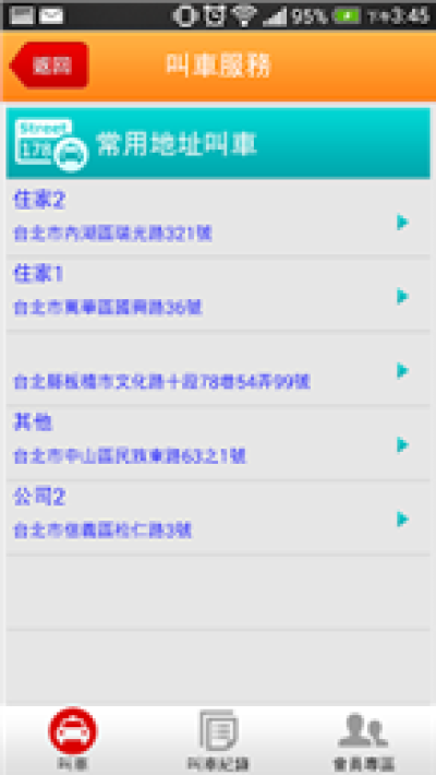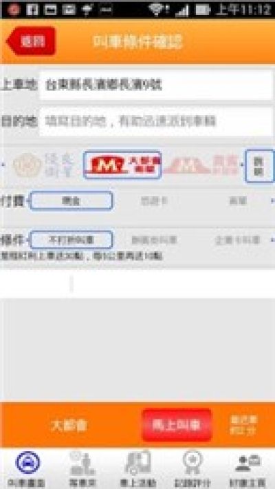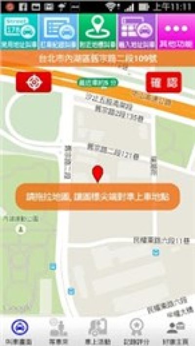 2.操作容易: 可利用手机自动GPS定位后,按下"确认"即可叫车。