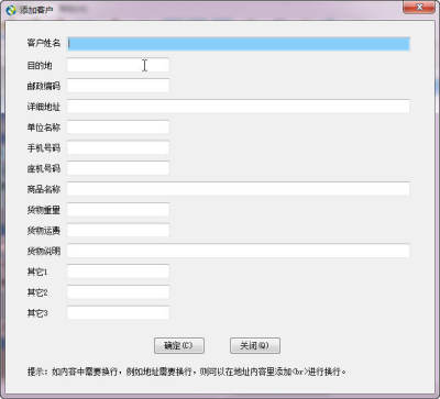 选择添加用户信息,填写用户姓名、电话、地址、商品名称、收费等等信息;同时支持修改、删除操作