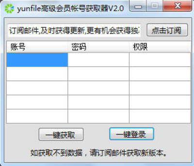 1、打开yunfile高级会员帐号获取器,输入你的QQ邮箱,点击订阅