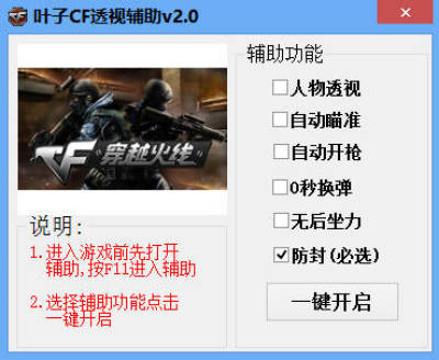 叶子cf透视辅助是一款功能全面的CF游戏辅助,主要为用户提供了人物透视、自动瞄准、自动开枪、零秒换弹等实用功能,需要的朋友可以下载使用。
