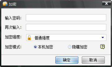 之后设置加密密码,选择加密强度(普通、较高、最高)和加密方式(本机加密和隐藏加密)