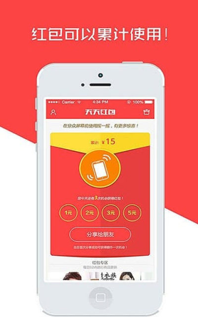 天天红包是一个购物送红包的手机应用,这里为大家精选了大量的优质商品,用户朋友在这里购物的同时只需摇一摇手机就可以抢到红包哟,真正让大家买的放心、玩得开心!
