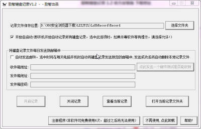 可将键盘记录发送到指定邮箱,可设置自动发送