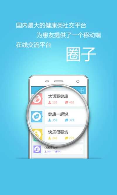 一、圈子:国内最大的健康类社交平台,为患友提供了一个移动端在线交流平台,