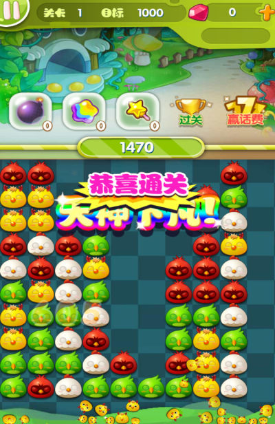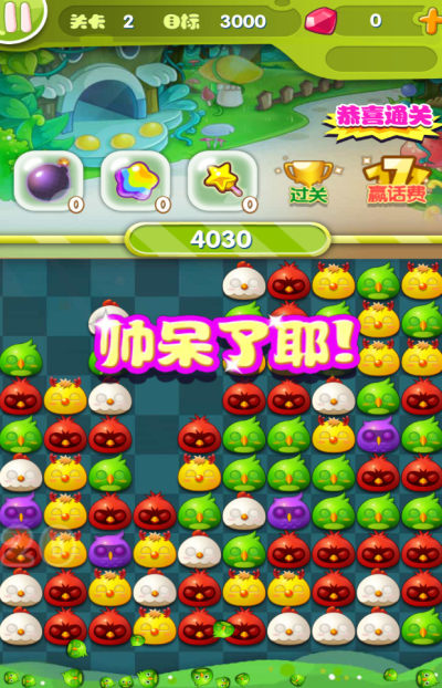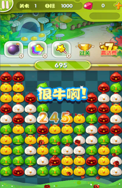 游戏和消灭星星类似,只是把星星换成了可爱的小鸟,不过游戏中有着炫酷的特效和众多的道具,玩法更丰富,更有趣味,喜欢的小伙伴可以下载试试!