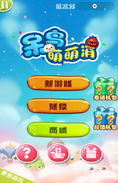 呆鸟萌萌消是一款画面Q萌精美的经典三消手游,游戏玩法类似于消灭星星系列,玩家在游戏中会看到各种可爱的萌鸟,用手指将它们消除吧,消除的时候还会发出可爱的声音哦。