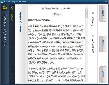 双击Menksoft Mongolian IME 2012 安装包出现如下界面。单击