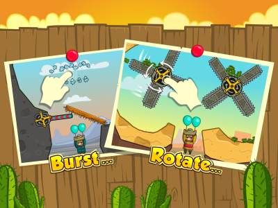 可怜的猎人潘乔被困在峡谷底下,他要依靠手中的气球助他一臂之力——帮他飞天!可是这里周围遍布里带刺的仙人掌,一不小心,气球就会被刺,他就会再次跌落谷底!快来帮他搞定这些恼人的仙人掌吧! 这是一款风格可爱的物理益智游戏,游戏中通过点击木桩,石头等道具,帮助猎人逃生!