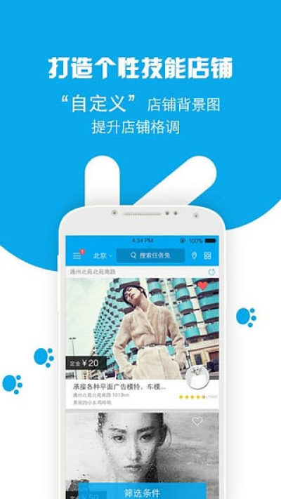 任务兔是亚洲最大的本地职业技能共享服务平台,旨在为有职业服务需求的用户和乐于共享职业技能的手艺人搭建桥梁,帮助拥有一门职业技能的手艺人在手机上快速用自己的一技之长开店,同时帮助有服务需求的用户提供低于市场价格30%的本地职业技能服务。错过实物开店的淘宝,不能再错过职业技能开店的任务兔!