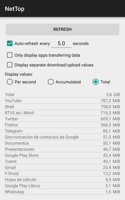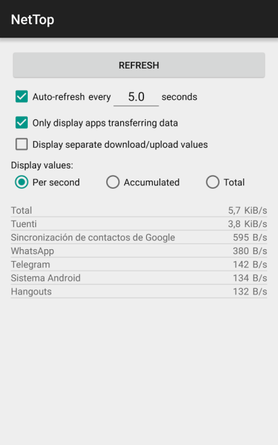 • 可配置的刷新。页面内的应用的使用数据参数可以自动进行刷新。你可以随时调整之间的间隔时间。你还可以通过刷新按键请求立即刷新,此功能对禁用了自动刷新的用户会更实用。