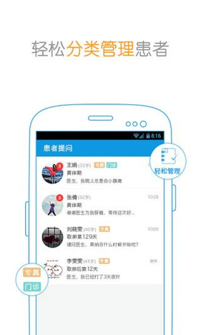 1.轻松管理——新老患者分类管理,一对一在线交流,保护医患双方隐私